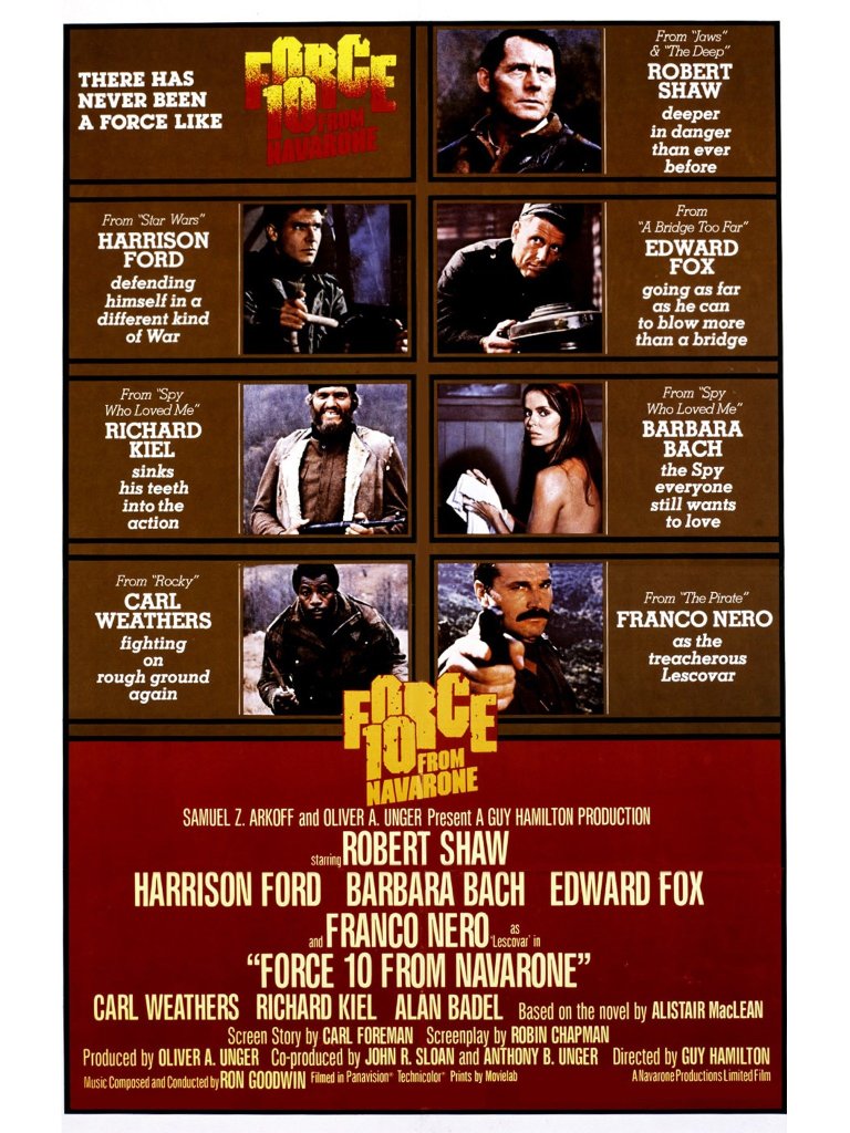 A grosso modo, podemos dividir el cine bélico en dos grandes corrientes: el dramático, que usualmente termina por ser anti-bélico y que nos muestra el lado realista y crudo de la guerra, el horror de la misma; y el festivo, donde la guerra no es más que un escenario para aventuras heroicas. De este segundo grupo, es el subgénero «de misiones» el que más se destaca y uno que durante las décadas del 60 y 70 funcionó más que frecuentemente. De todas las posibles películas «de misiones» probablemente «Los Cañones de Navarone» sea una de las mejores y fue una además que reportó un gran éxito económico, tanto para la novela original de Alistair MacLean, como para la adaptación cinematográfica de J. Lee Thompson. Tanto fue el éxito, que MacLean poco después escribió una secuela y esta que aquí nos ocupa es su correspondiente adaptación. Ubicada apenas dos años después de la anterior, nos reencontramos con sus dos protagonistas Mallory y Miller (salen Gregory Peck y David Niven, entran Robert Shaw y Edward Fox y a decir verdad no se resiente nada con el cambio) y estos se ven obligados a volver a la acción, esta vez en Yugoeslavia, para atrapar a un traidor, el mismo que comprometiera la anterior misión. Viajan junto a la Fuerza 10 del título (que no tiene ninguna vinculación con Navarone, más allá de tratar atrapar más público) que viaja con su propia misión, comandada por un jovencísimo Harrison Ford. No es la primera, la verdad que no, y tiene además un guión que si se lo mira con lupa (toda la vinculación con «Los Cañones…» hace agua, el accionar del traidor es incomprensible por momentos) se ve finísimo, pero que entretiene, entretiene sin dudas. Y el tramo final, con la misión propiamente dicha y donde todos tienen que cumplir con su rol cronometrados a la perfección, es un ejemplo del talento de Guy Hamilton. Sumemos un montón de caras conocidas en su elenco (Barbara Bach, Franco Nero, Carl Weathers, Richard Kiel, Michael Byrne) y tenemos un gran ejemplo de cine de matineé. 07.