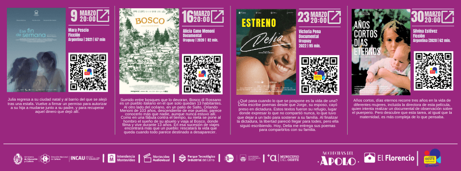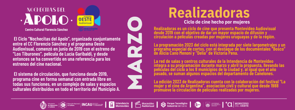 En la quinta temporada de Cine en el Oeste, el ciclo «Realizadoras» de Montevideo Audiovisual se programa en la sala del Centro Cultural Florencio Sánchez en cuatro jueves del mes de marzo